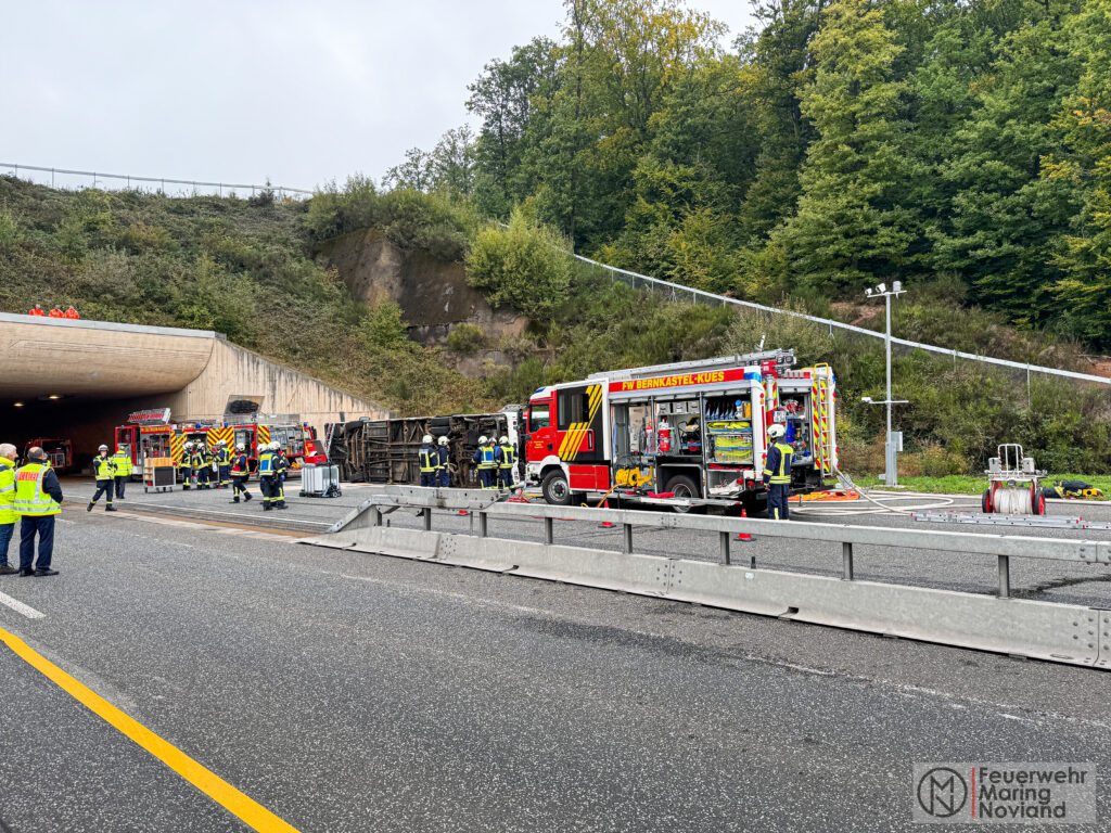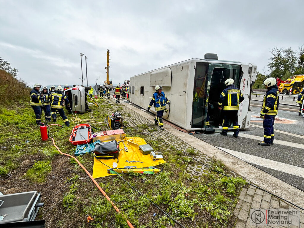 Ein Bus lag auf der Seite, zwei PKW waren schwer beschädigt – zahlreiche Personen befanden sich verletzt oder eingeklemmt in den Fahrzeugen.