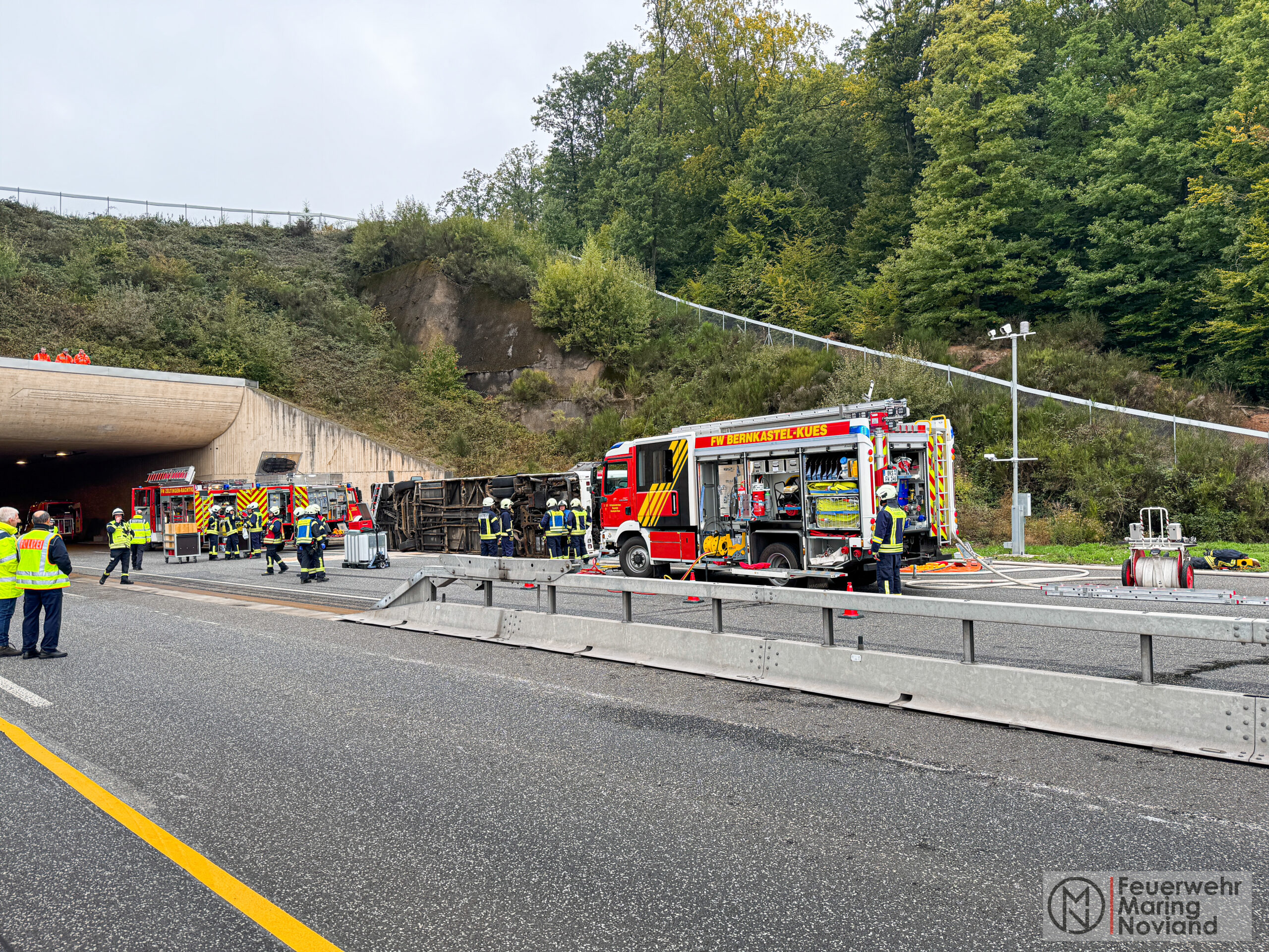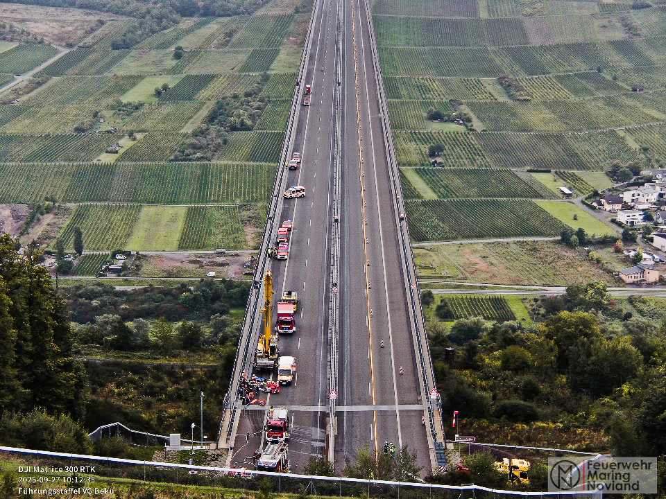 Beteiligt waren die Feuerwehren Zeltingen-Rachtig & Kues, die FEZ und Wehrleitung der VG, das DRK, LBM, die Firma Steil Kranarbeiten, die Polizei sowie zahlreiche Beobachter wie Bürgermeister Leo Wächter und BKI Jörg Teusch.